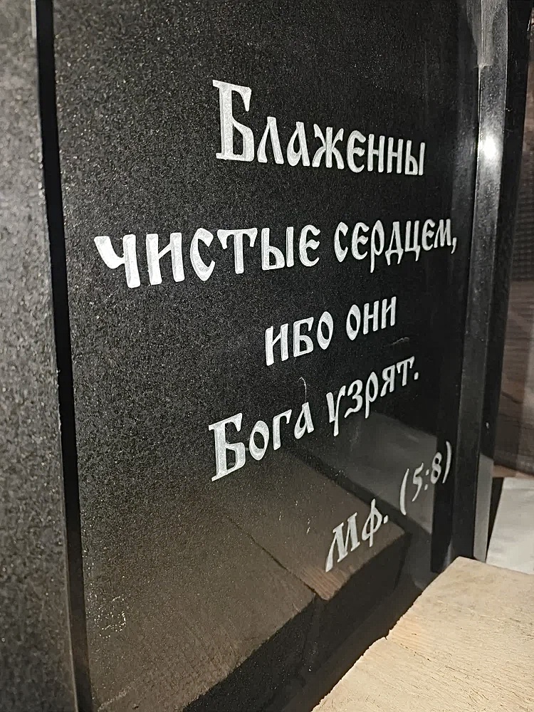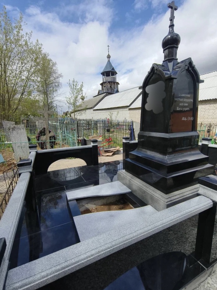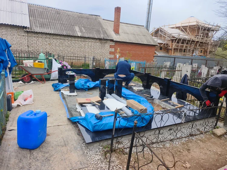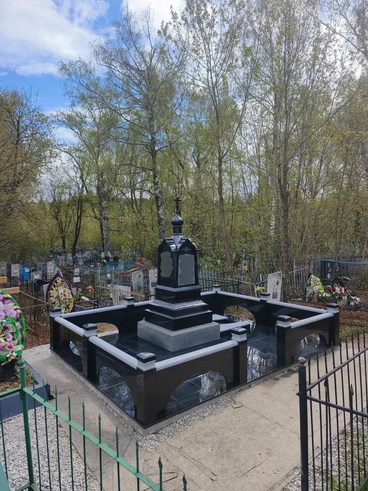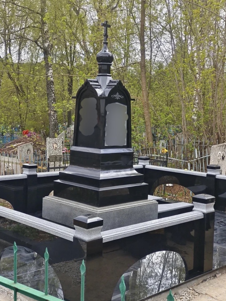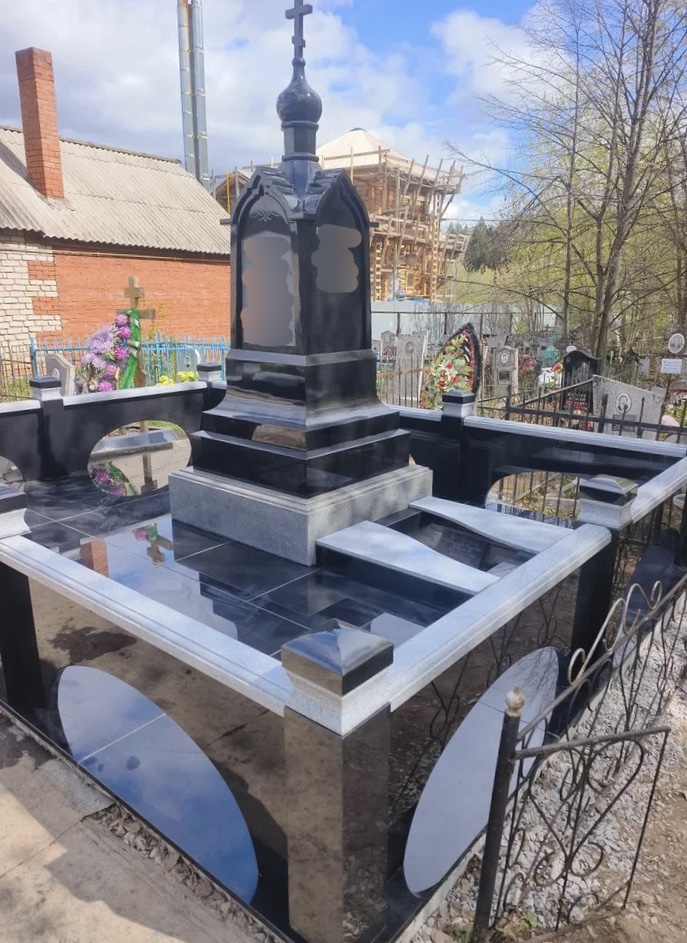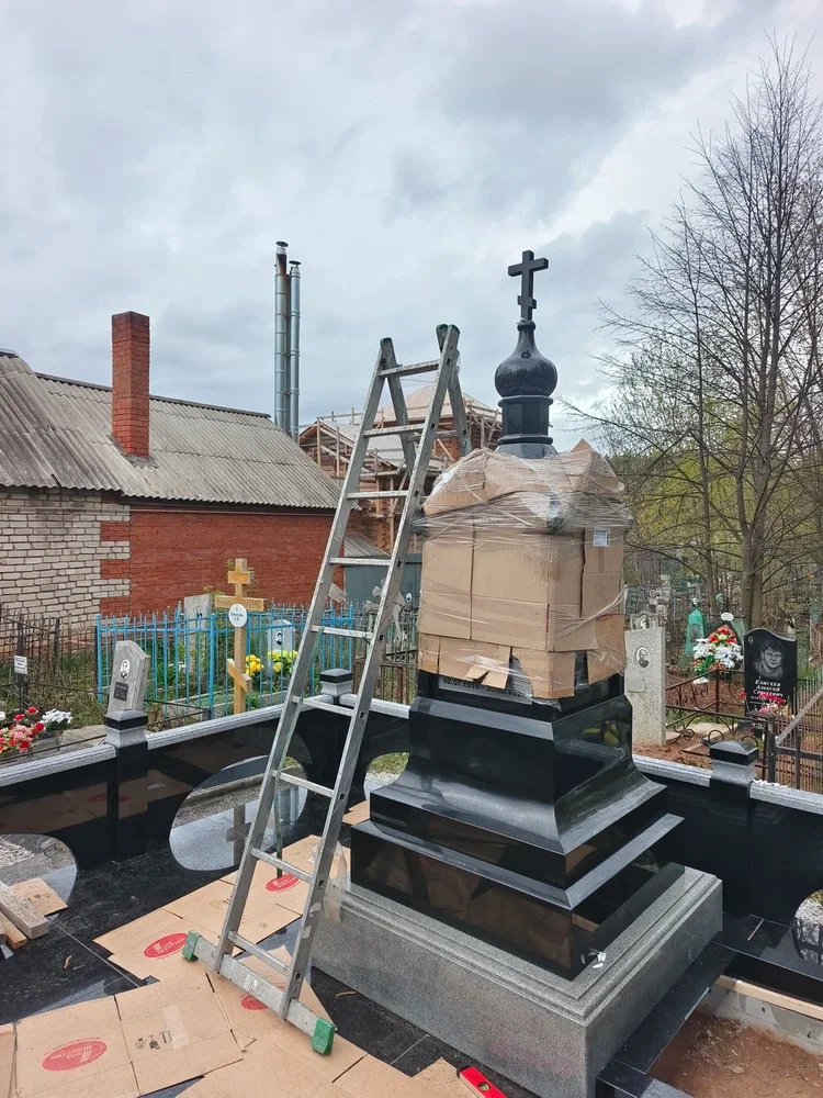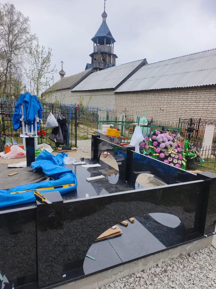 Создание мемориального комплекса с церковью в г. Вятские поляны (Кировская область) это сложная, ответственная и знаковая работа для нашей компании. Работа над комплексом продолжалась 2 года. Начало было положено в апреле 2024 г. посещением с заказчиком Ваганьковского кладбища г. Москвы, где он ознакомился с нашими работами разных лет. Была проработана концепция комплекса, стилистика, выбраны варианты гравировки текстов. Летом 2024 г.на месте захоронения в г. Вятские поляны силами заказчика были подготовлены серьезные фундаменты по чертежам и в присутствии наших специалистов. Готовый комплекс был разгружен на нашем складе в октябре 2024 г. и было принято решение произвести монтаж комплекса в 2025 г. с устойчиво плюсовой температурой на месте производства работ. Работы были сданы в мае 2025 г. Подробное описание всех этапов работ от создания до финального монтажа можно найти в разделе Разное «Создание мемориального комплекса в г. Вятские поляны (2024-2025)»ПРИМЕР№1.