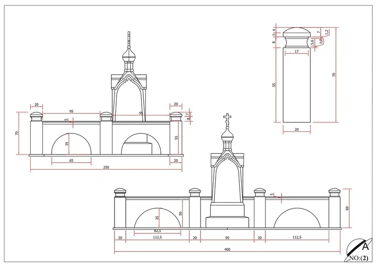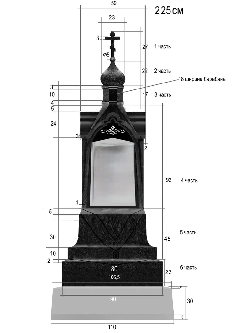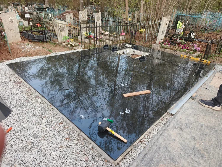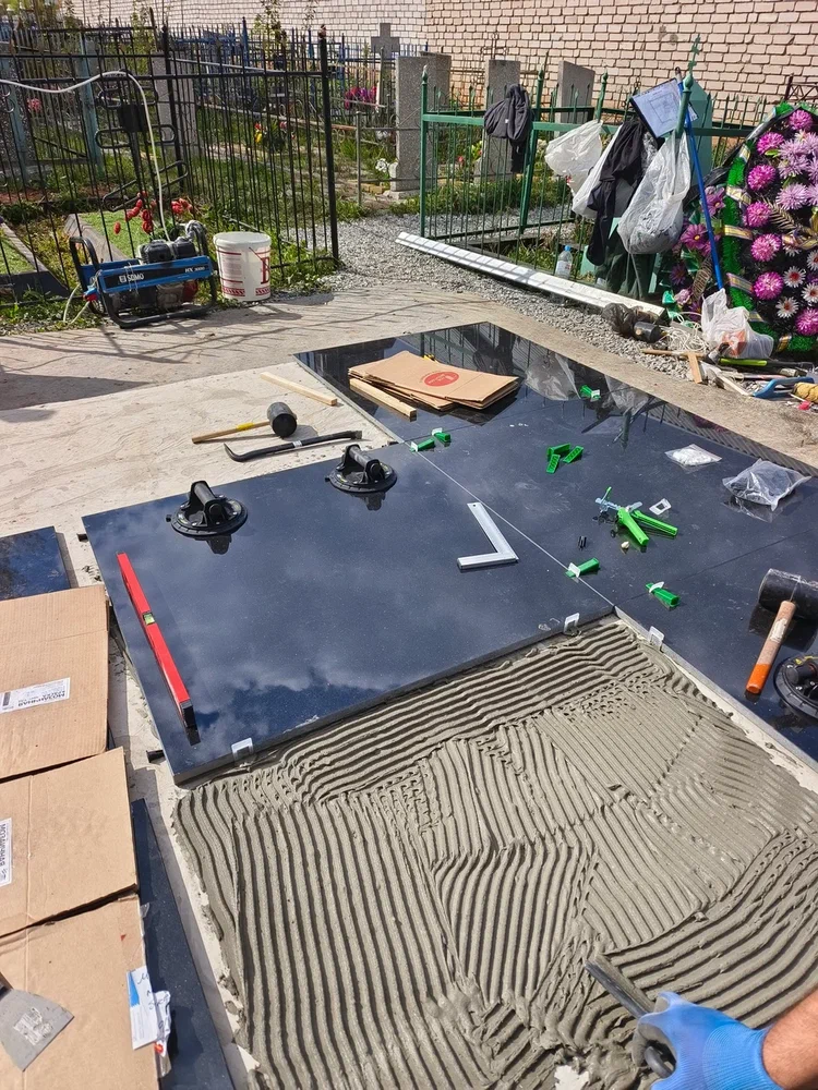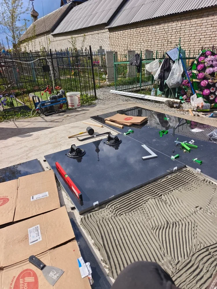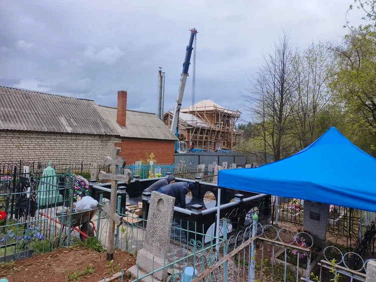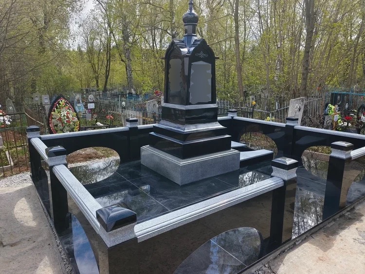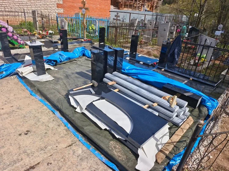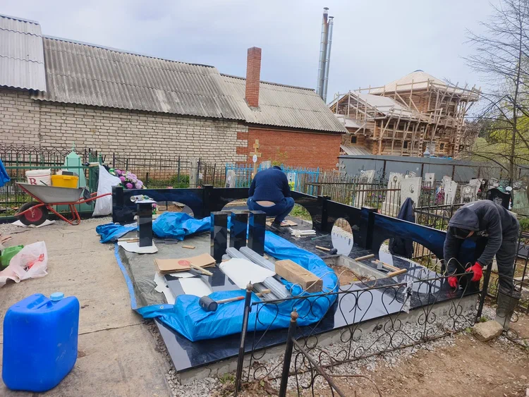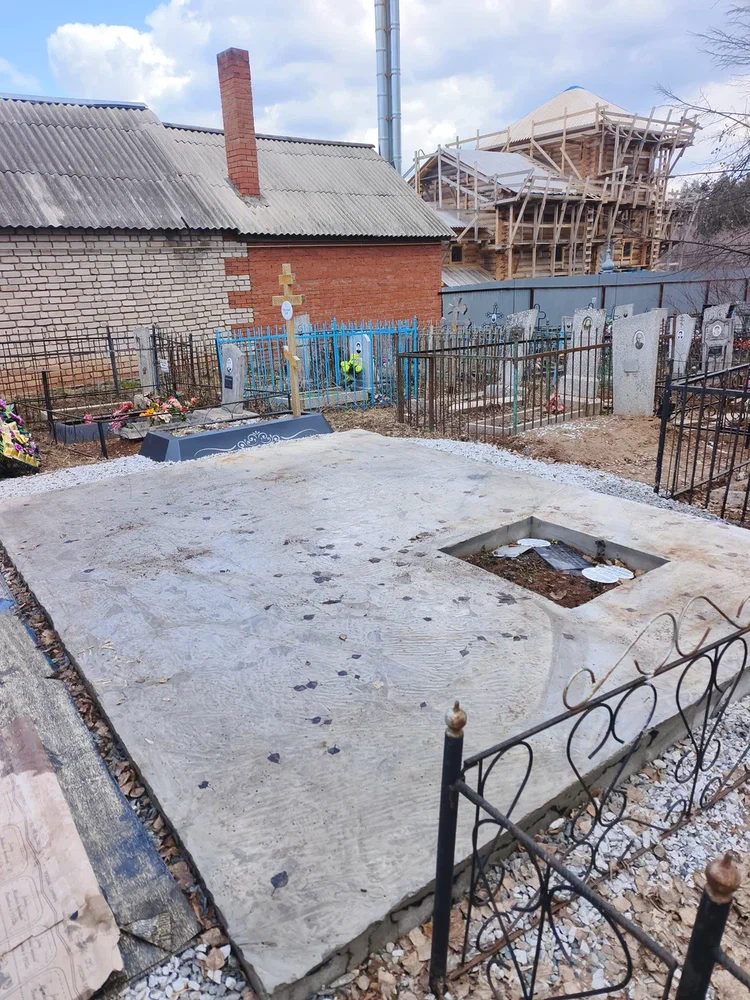 Создание мемориального комплекса с церковью в г. Вятские поляны (Кировская область) это сложная, ответственная и знаковая работа для нашей компании. Работа над комплексом продолжалась 2 года. Начало было положено в апреле 2024 г. посещением с заказчиком Ваганьковского кладбища г. Москвы, где он ознакомился с нашими работами разных лет. Была проработана концепция комплекса, стилистика, выбраны варианты гравировки текстов. Летом 2024 г.на месте захоронения в г. Вятские поляны силами заказчика были подготовлены серьезные фундаменты по чертежам и в присутствии наших специалистов. Готовый комплекс был разгружен на нашем складе в октябре 2024 г. и было принято решение произвести монтаж комплекса в 2025 г. с устойчиво плюсовой температурой на месте производства работ. Работы были сданы в мае 2025 г. Подробное описание всех этапов работ от создания до финального монтажа можно найти в разделе Разное «Создание мемориального комплекса в г. Вятские поляны (2024-2025)»ПРИМЕР№1.