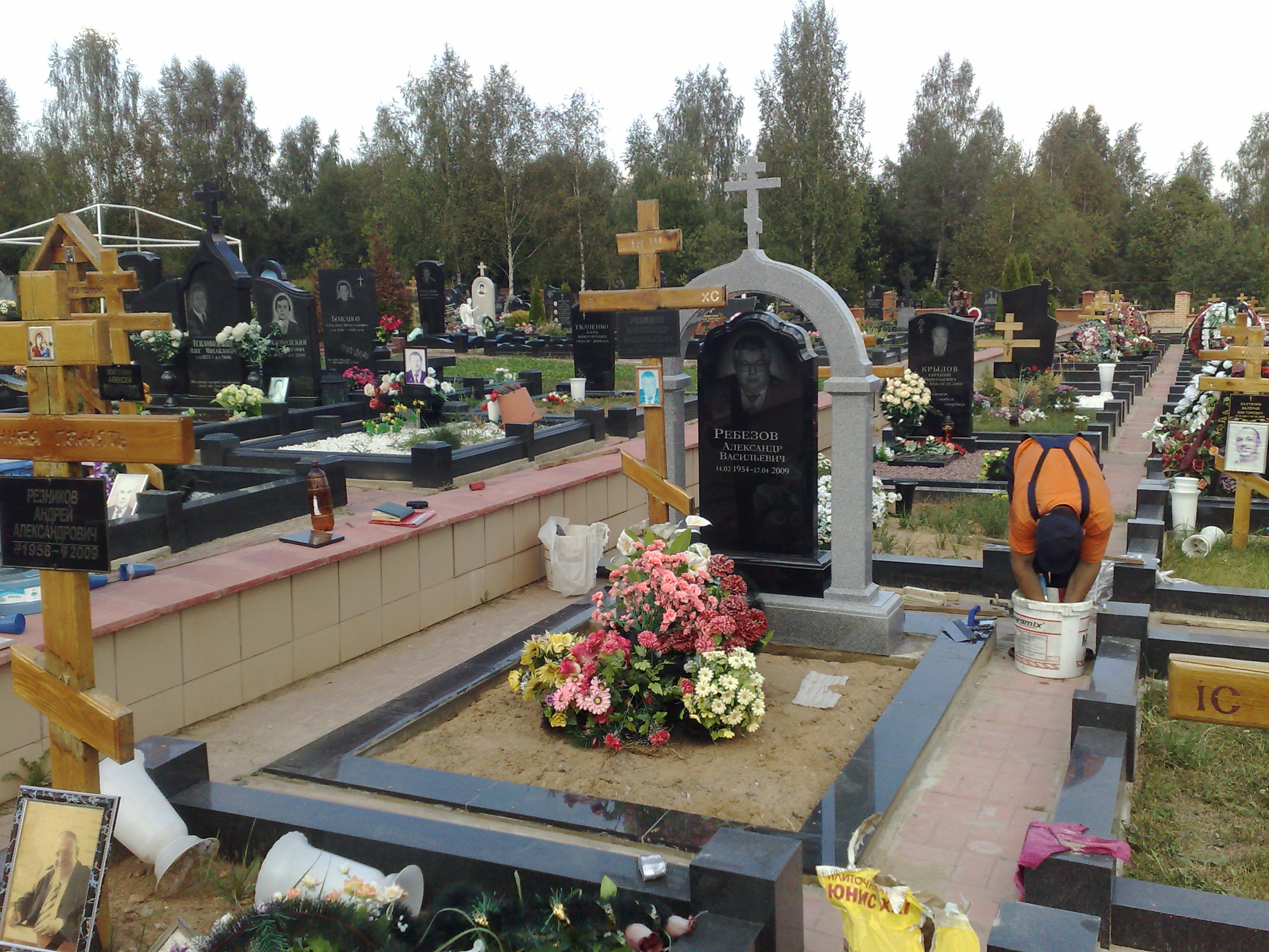 Памятник арка из пестро-серого (соль-перец) гранита на Митинском кладбище. Внутри арки установлена стела из гранита Shanxi Black. По периметру место захоронения обнесено кованой оградой с элементами гранитного цоколя по углам. Цоколь дополняется гранитными шарами на подставке, установленными на гранитных столбиках. В качестве декоративного элемента используется гранитная ваза. Для элитного захоронения предварительно был разработан эскизный проект кованой ограды. В дальнейшем был разработан дизайн кованой ограды с использованием технологии трехмерного моделирования. На основании этого дизайна и была изготовлена кованая ограда по индивидуальному проекту.
